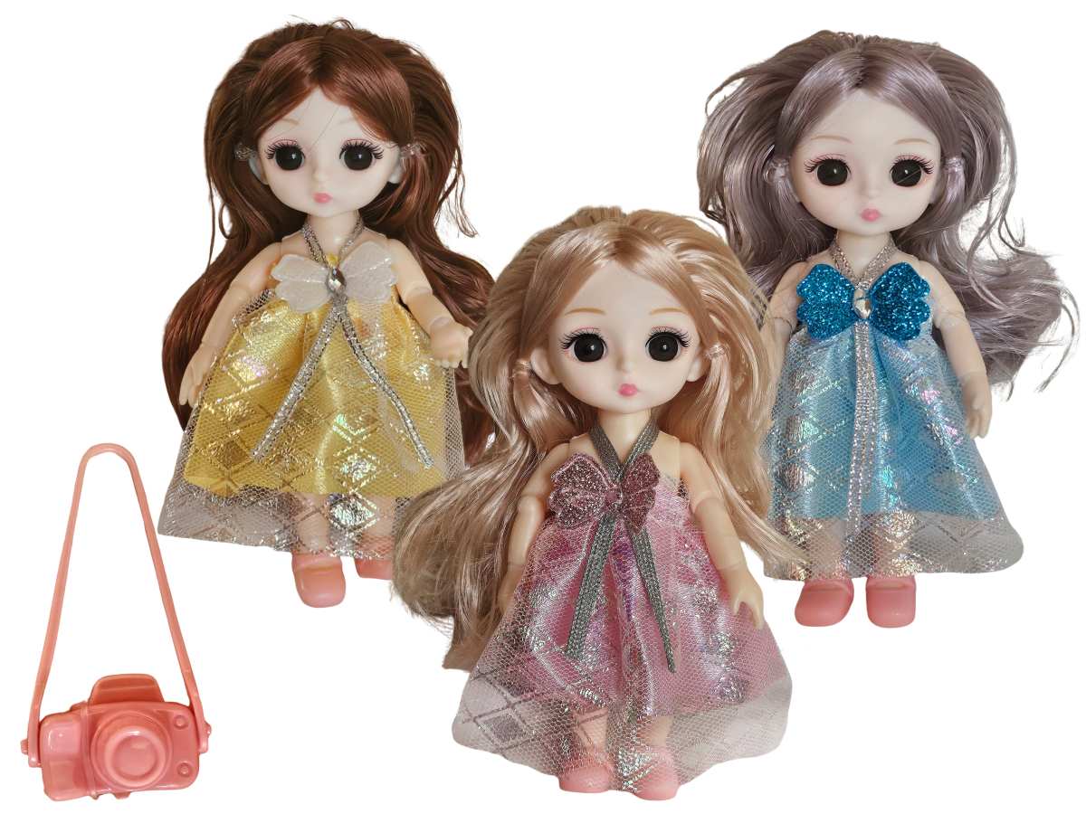 Kĺbová bábika s fotoaparátom. Možnosť výberu z troch farieb vlasov (blond, hnedé alebo sivé) a z troch farieb šiat (žlté, modré alebo ružové). Nevhodné pre deti do 3 rokov.