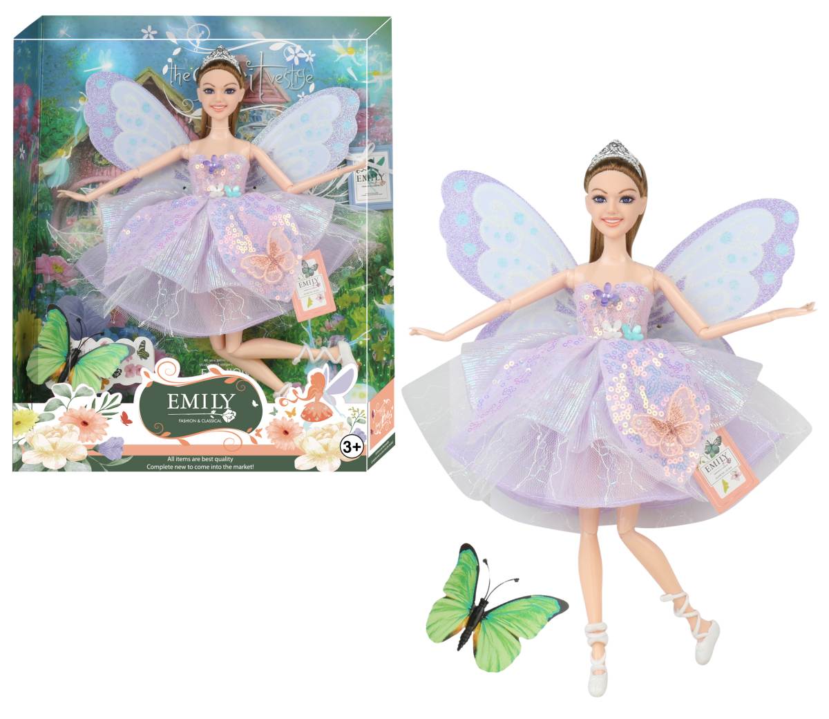 Motýlia 29cm kĺbová bábika Emily s doplnkami (s motýľom a kvietkami). Výber z dvoch druhov. Nevhodné pre deti do 3 rokov.