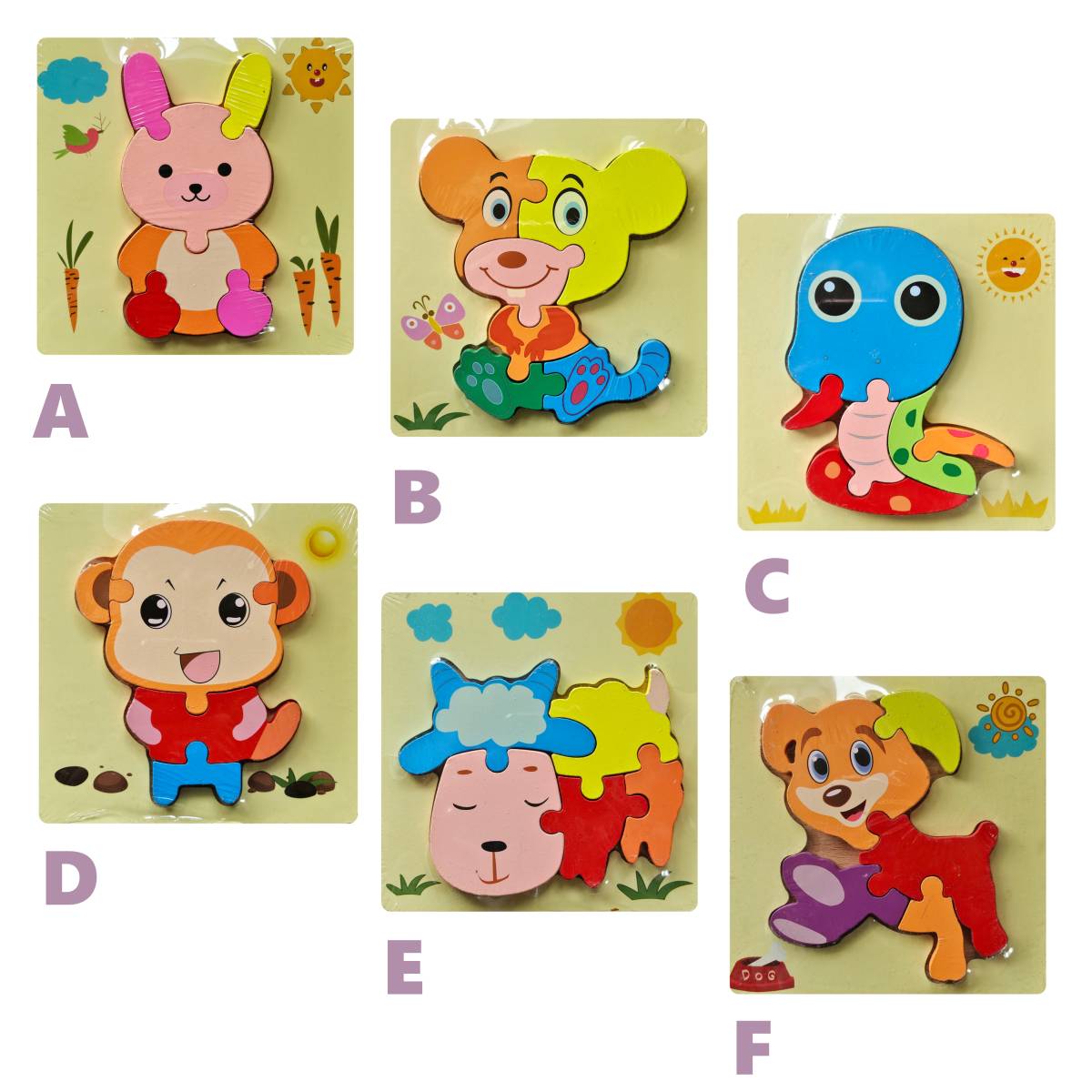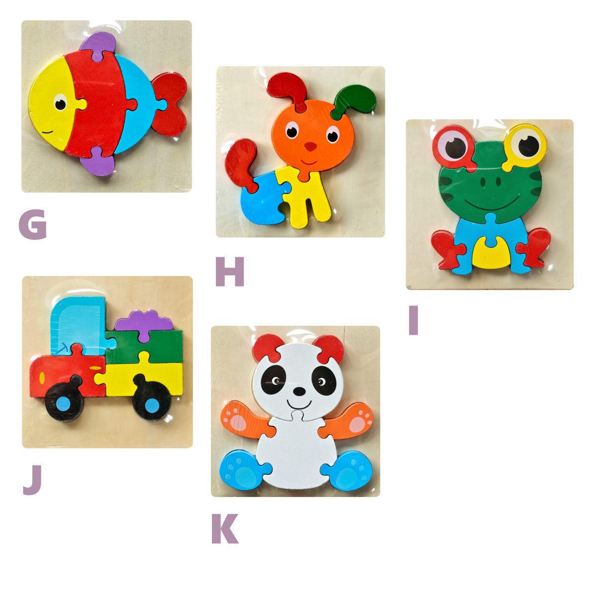 Detské jednoduché drevené puzzle s farebným pozadím. Možnosť výberu z niekoľkých druhov. Nevhodné pre deti do 3 rokov.