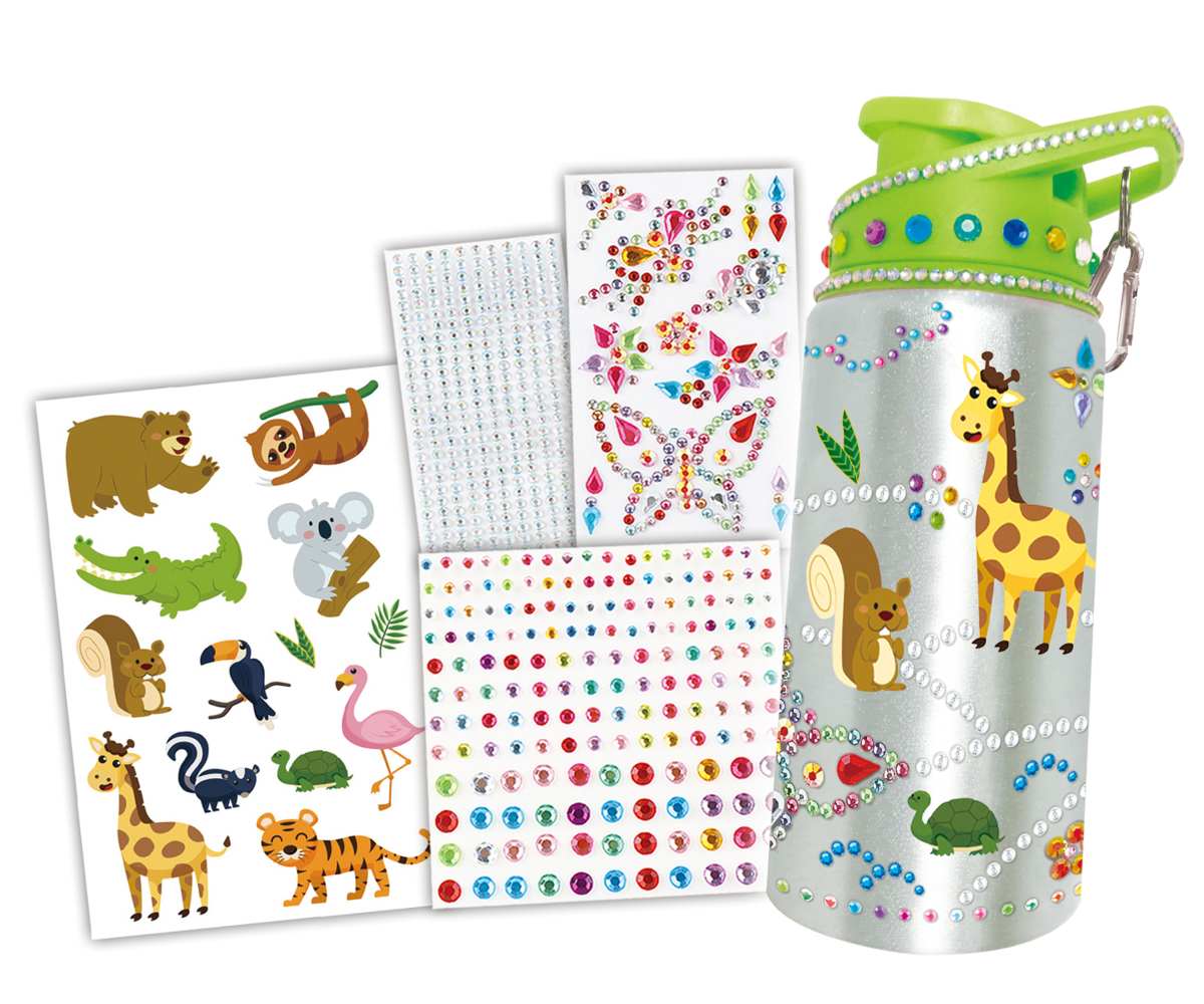 Milý darček pre kreatívnu dušu. Balenie obsahuje 500ml fľašku s karabinou, nálepky so zvieratkami a nalepovacie kamienky rôznych farieb, veľkostí a tvarov. Nevhodné pre deti do 3 rokov.