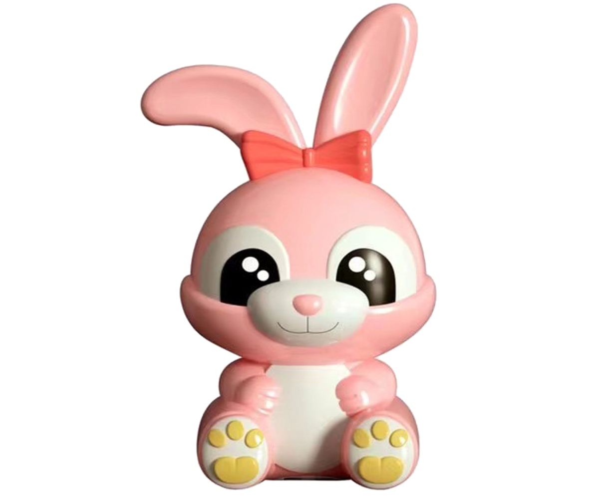 Pokladnička v tvare zajačika so svetlom. Po vytiahnutí poistky a zapnutí, začne zajačik svietiť. Hračka vyžaduje 3ks gombíkových batérií typu AG13, ktoré sú súčasťou balenia. Možnosť výberu z troch farieb – ružová, fialová alebo oranžová. Nevhodné pre deti do 3 rokov.