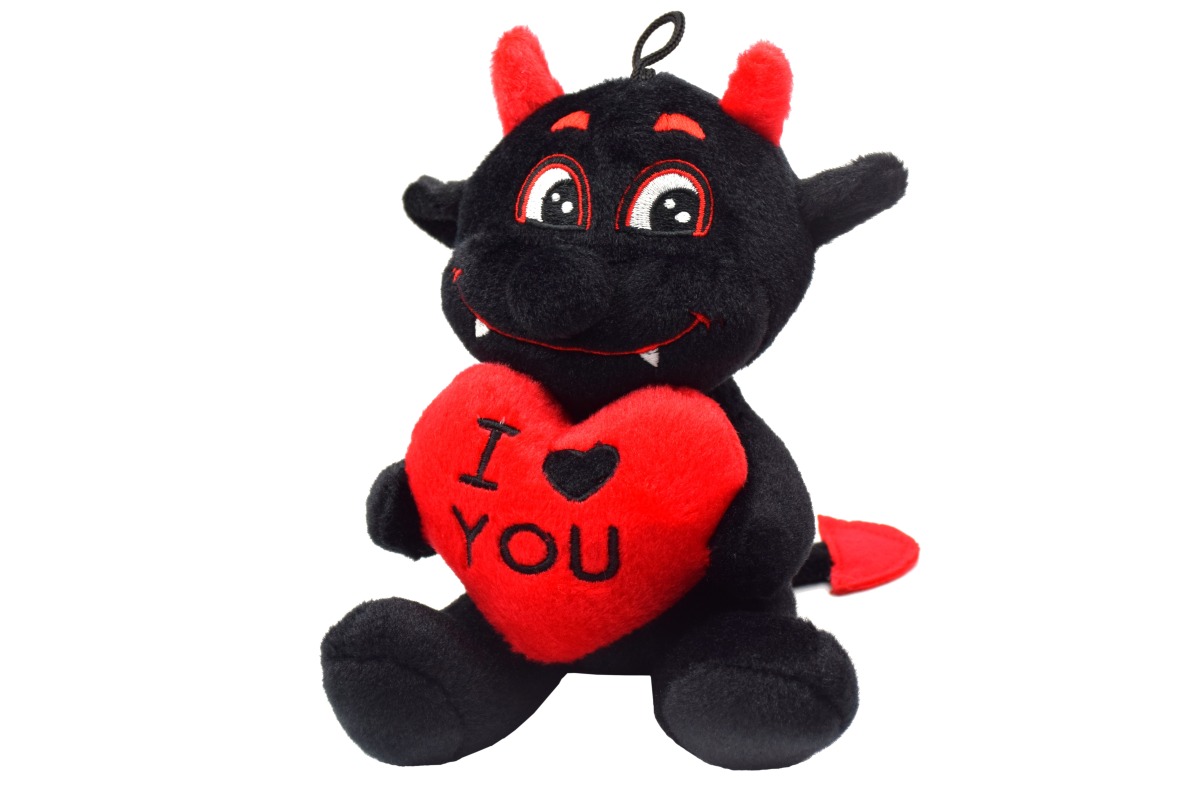 Plyšový sediaci 15cm čertík so srdiečkom. Možnosť výberu z dvoch farieb.