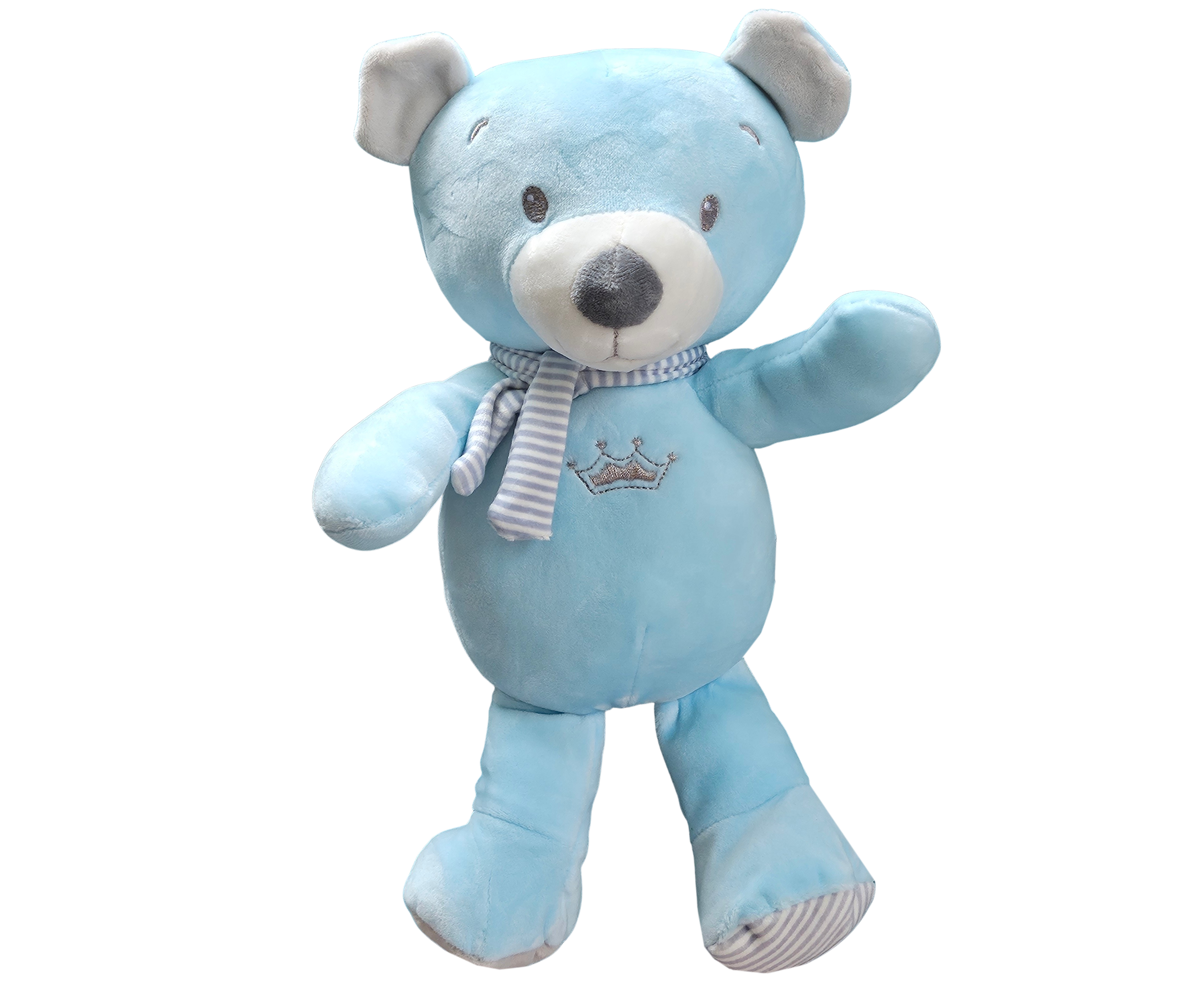 Plyšový 30cm medvedík Joe so šálom. Možnosť výberu z dvoch farieb – modrý alebo ružový. Jemný na dotyk.
