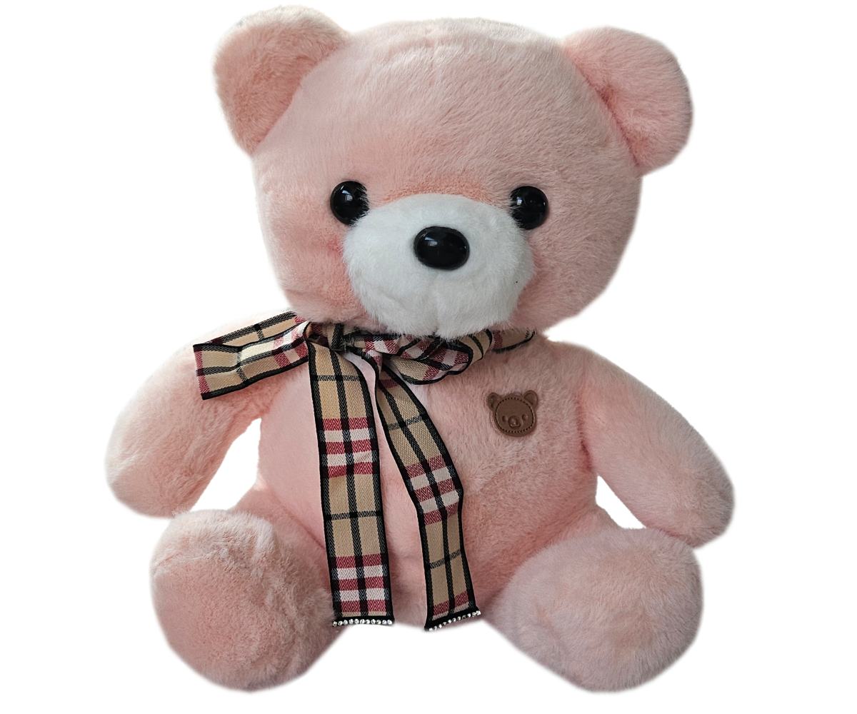Plyšový 29cm sediaci medvedík s mašľou. Možnosť výberu z troch farieb.