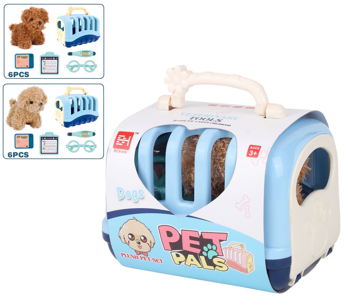 Balenie obsahuje klietku, plyšového psíka – modrá klietka – okuliare, teplomer a lekárske dokumenty, oranžová klietka – vôdzku, kosť, plechovku a misku, ružová klietka – kefu na srsť, zrkadielko a dve gumičky do vlasov. Možnosť výberu z troch farieb klietok. Nevhodné pre deti do 3 rokov.